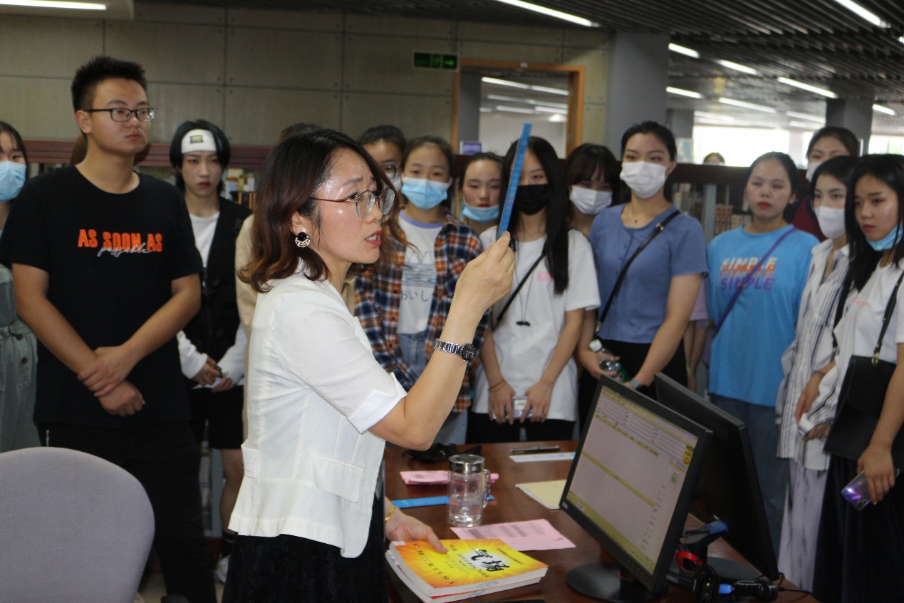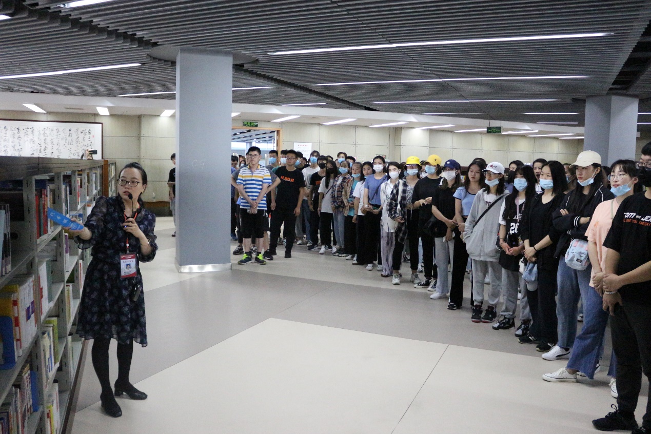 参观图书馆时,图书馆管理员们向新生们介绍了借阅书籍的流程,并且向同学们细说了图书借阅时的注意事项以及还书时应该注意的事项。