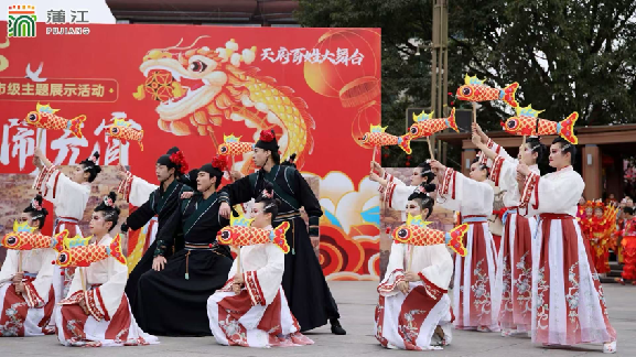 舞蹈学247班宋宇昊等同学参加2025年”成都文化四季风•民俗闹春市级主题展演,参演剧目《梦回广定》。