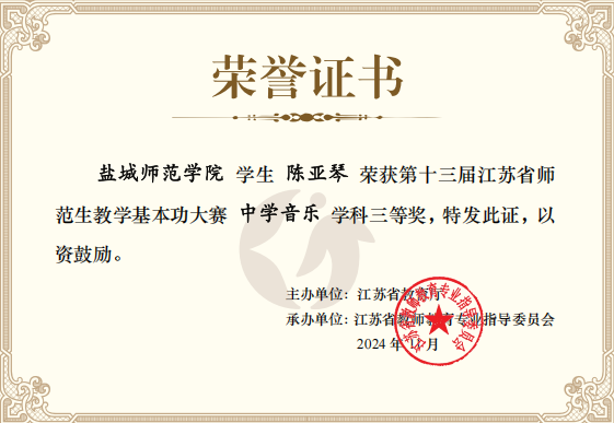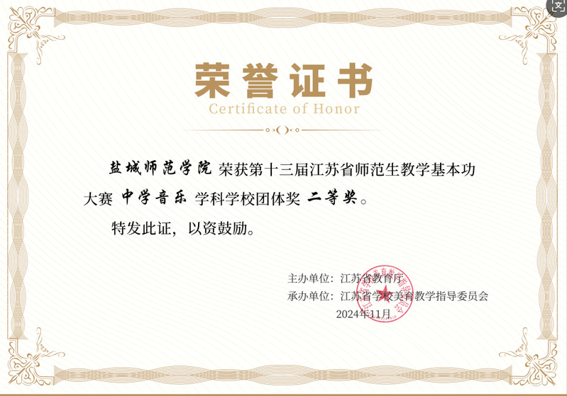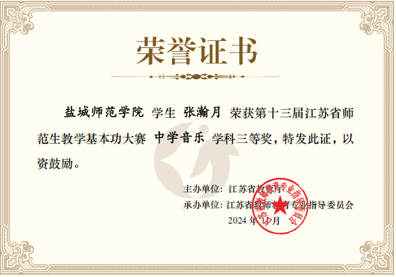 同时,张瀚月和陈亚琴同学在比赛中也展现出了过硬的专业能力和良好的精神风貌,荣获中学音乐学科三等奖。充分体现了公司对员工教学实践能力培养的显著成效。