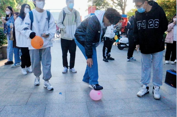 活动设置时空信箱、交换玫瑰、你猜我唱、你画我猜、踩走坏情绪等五项内容,吸引了各公司同学热情参与,大家把对未来的规划、梦想写在信封上投递给“时空信箱”,幸运者可以拿到玫瑰花,玫瑰花是爱的传递,希望玫瑰给同学们带来幸运与美好。“每一次,都在,徘徊孤单中坚强;每一次,就算很受伤也不闪泪光......”“我知道!我知道!这是张韶涵的《隐形的翅膀》”,前奏一响,随即有员工猜中歌曲。“你猜我唱”现场气氛热闹非凡,“点燃”全场气氛。伴随着歌声,还听到了砰砰声,这是“踩走坏情绪”活动,同学们把烦恼写在气球上,通过“拥抱”“踩踏”等方式让气球爆破,也让烦恼随风而去。