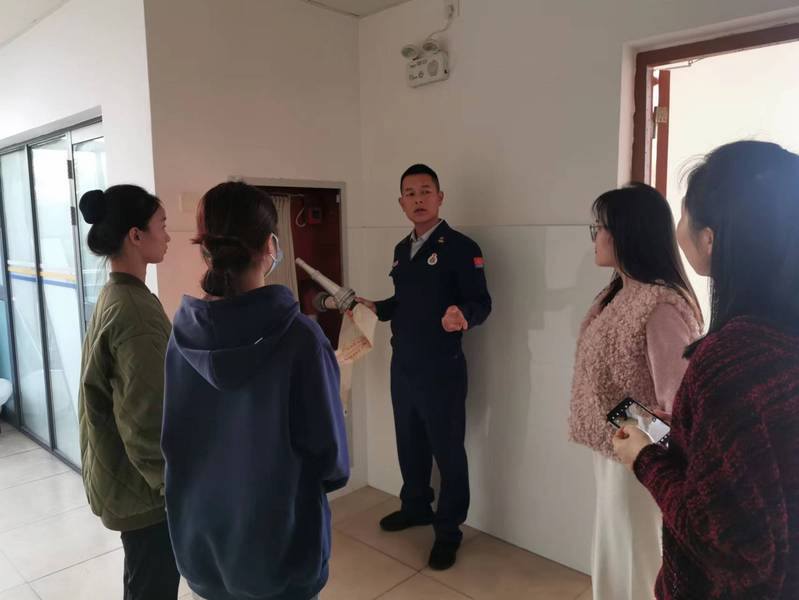 “人不在宿舍,桌边床头插线板电源并未切断,接线板旁边有很多书本,这些都是火灾隐患,如有意外很容易引发火情。”站长李泽乾边检查边指出安全隐患。消防员还利用宿舍走廊里陈列的消防设施,对同学们进行了灭火器操作、室内消火栓使用等消防安全培训,尤其是对消防水带连接、快速展开以及枪头的规范握持进行了示范讲解,并指导在场师生体验操作流程。